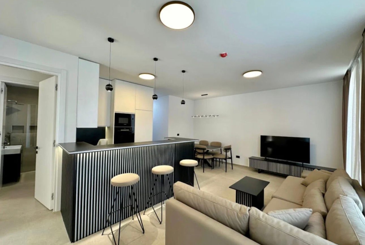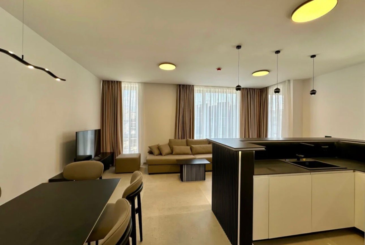 Apartamenti është i sapo arreduar me arkitekt.Janë ndërtesa 3 kateshe dhe të mirë sistemuara. Organizohet ne ambient ndenje dhe gatimi, dy dhoma gjumi, tualet dhe ballkon.