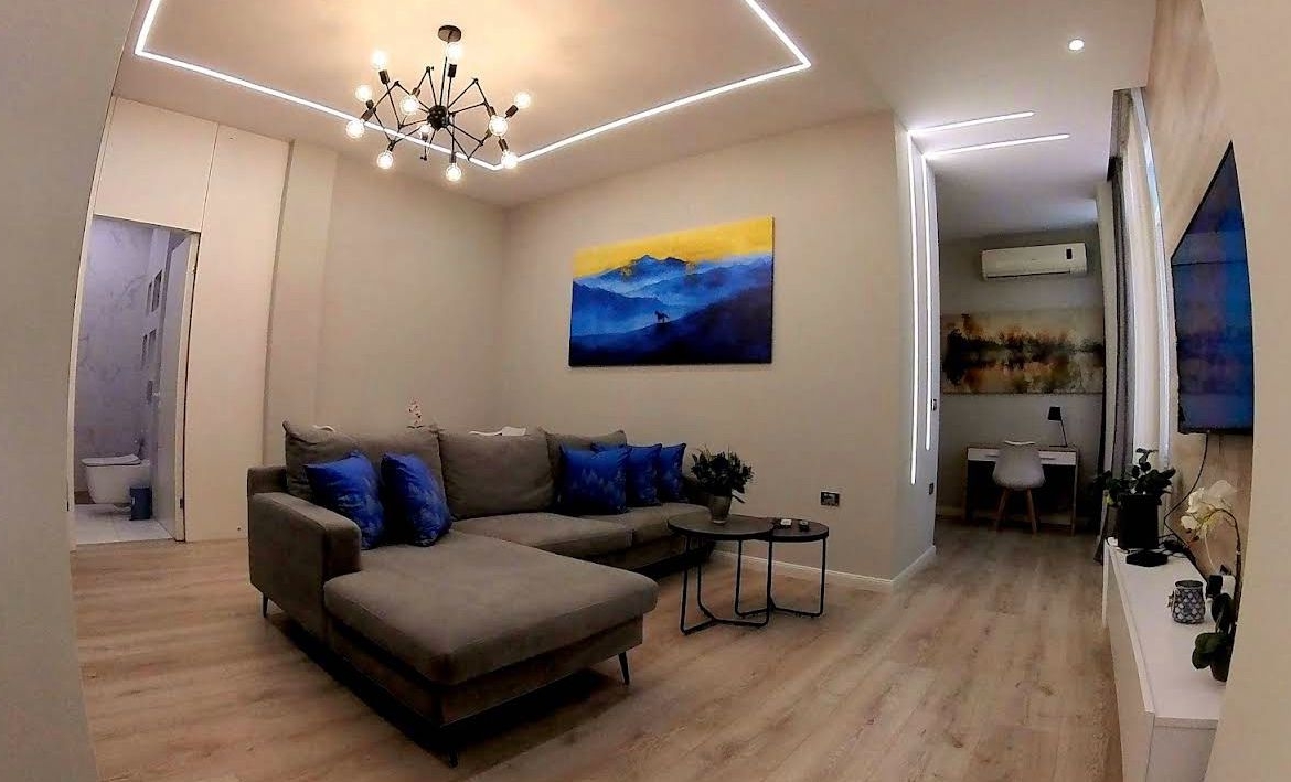 Apartamenti është i arreduar shumë mirë, me mobilim modern